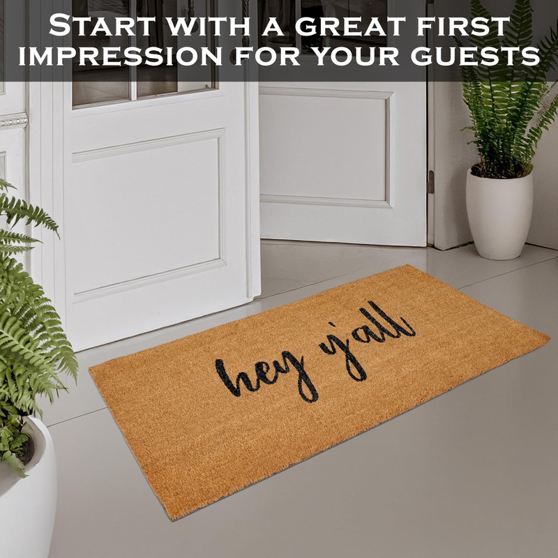 - Practical year-round decor - Leave the dirt outside with our Hey Y'all large door mat 48x24 inch; Large front door mat outdoor entrance to add personality to your doorstep