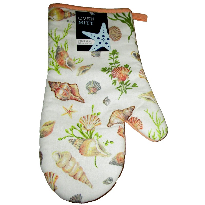Mainstream COASTAL OVENMITT ~ 7" X 12" ~ SEASHELLS ~ 100% Cotton