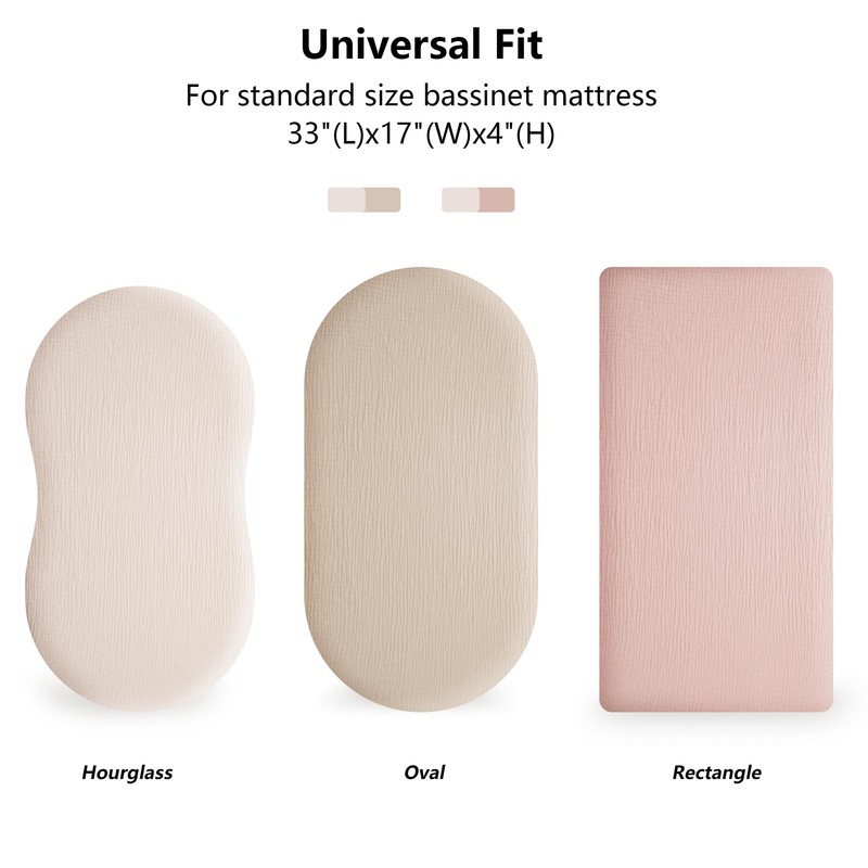 - Chic Versatility, Timeless Style-- Elevate your nursery's style with our chic bassinet sheets. Universally compatible with various mattress shapes, such as oval bassinet, rectange bassinet, baby cradle, Moses basket, they effortlessly combine versatility with timeless elegance.