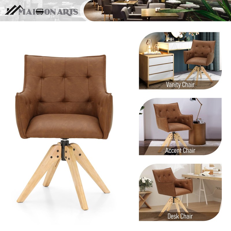 MAISON ARTS Swivel Accent Desk Chair Set of 2, Mid Century Modern Armchair Vanity Chair with Wood Legs for Small Spaces Home Office Living Room Bedroom, Brown