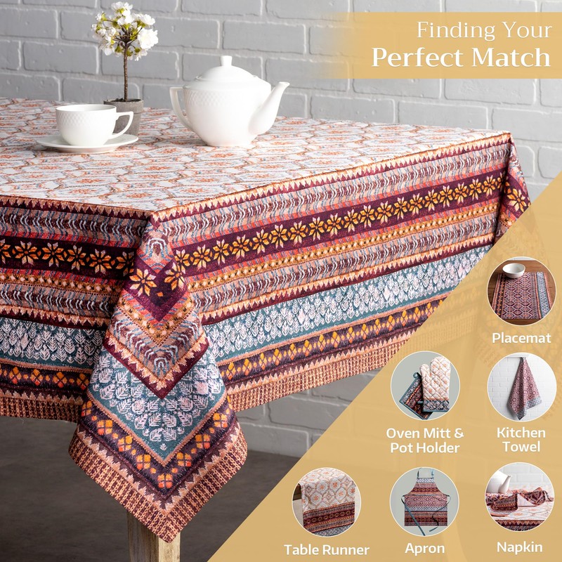 - MANY MORE TO SHOP FOR: Discover our range of coordinated kitchen accessories such as aprons, kitchen curtains, kitchen towels, mugs, napkins, placemats, pot holders, and table runners that match this unique tablecloth design. Visit our store for more beautiful home decor items from the house of Maison d’ Hermine to elevate your space.