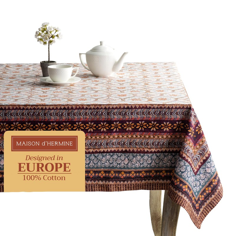 Maison d' Hermine 100% Cotton Table Cover - 60"x108" Rectangle Decorative Tablecloth - Washable Tablecloths for Dining, Home, Farmhouse & Party - for Thanksgiving & Christmas - Fair Isle Collection