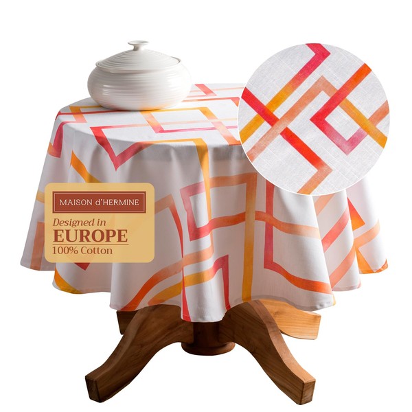 Maison d' Hermine 100% Cotton Table Cover - 69" Diameter Round Decorative Tablecloth - Tablecloths for Dining, Home, Farmhouse & Party - for Spring & Summer - Summer Maze Collection