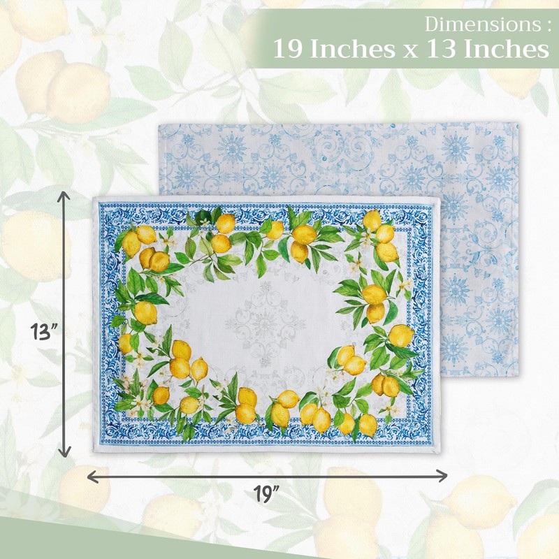 Maison d' Hermine Placemats Set of 4 100% Cotton Decorative Cloth Place Mat Washable Dinner Placemat for Holiday, Dinner, Wedding, Buffet Party & Dining, Cedrat - Spring/Summer (33 x 48 cm)