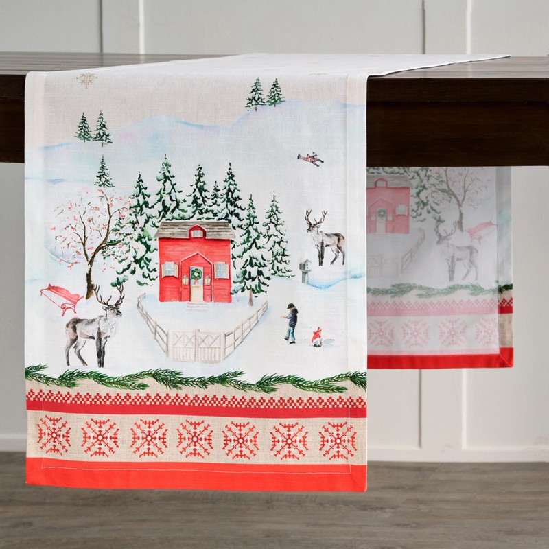 Maison d' Hermine Rural Christmas 100% Cotton Table Runner Tabletop Cover for Home Kitchen Dining Décor Cocktail Parties Family Dinners Wedding Thanksgiving/Christmas (Single Layer, 14.50"x72")
