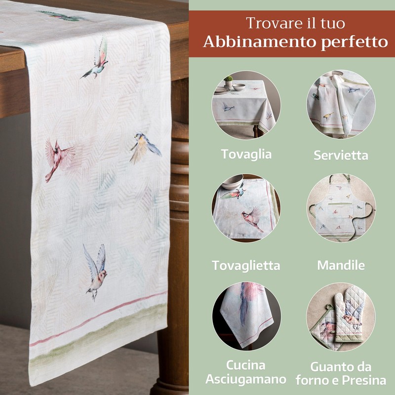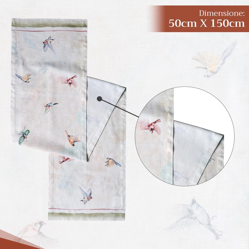 Maison d' Hermine Spring/Summer Table Runner, 100% Cotton, Decorative, Washable Table Runner, Easter Table Runner for Dining, Buffet Parties and Weddings - Flying Birds (50 cm x 150 cm)