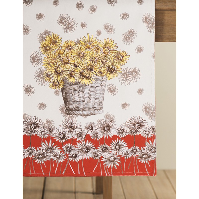 About the collection: Add a touch of botanical colour and character to your kitchen with the Bagatelle collection by Maison d'Hermine. Inspired by a pleasant rural picture, our Bagatelle collection showcases a brilliant design that impressively reflects the striking appeal of a field of delicate daisies and sun-kissed wildflowers. A classic floral arrangement atop a rustic wine barrel sits at the heart of a beautiful floral design depicting lovely daisy and wildflowers. To complete the whole thing, a fabulous blanket of grey daisies and wildflowers forms a natural border whose spherical flowers grow from incredibly thin stems. Masterfully developed in France and carefully printed on soft cotton fabric, each piece in this collection is sure to highlight the rustic style at the heart of your home.