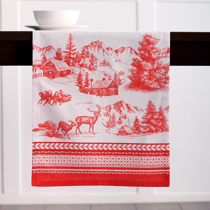 Maison d' Hermine Winter Jouy 100% Cotton Table Runner for Party | Dinner | Holidays | Kitchen | Thanksgiving/Christmas [Single Layer (37 cm x 180 cm)]