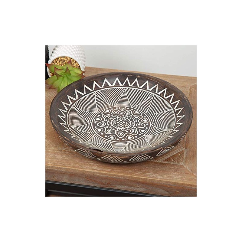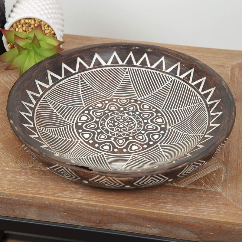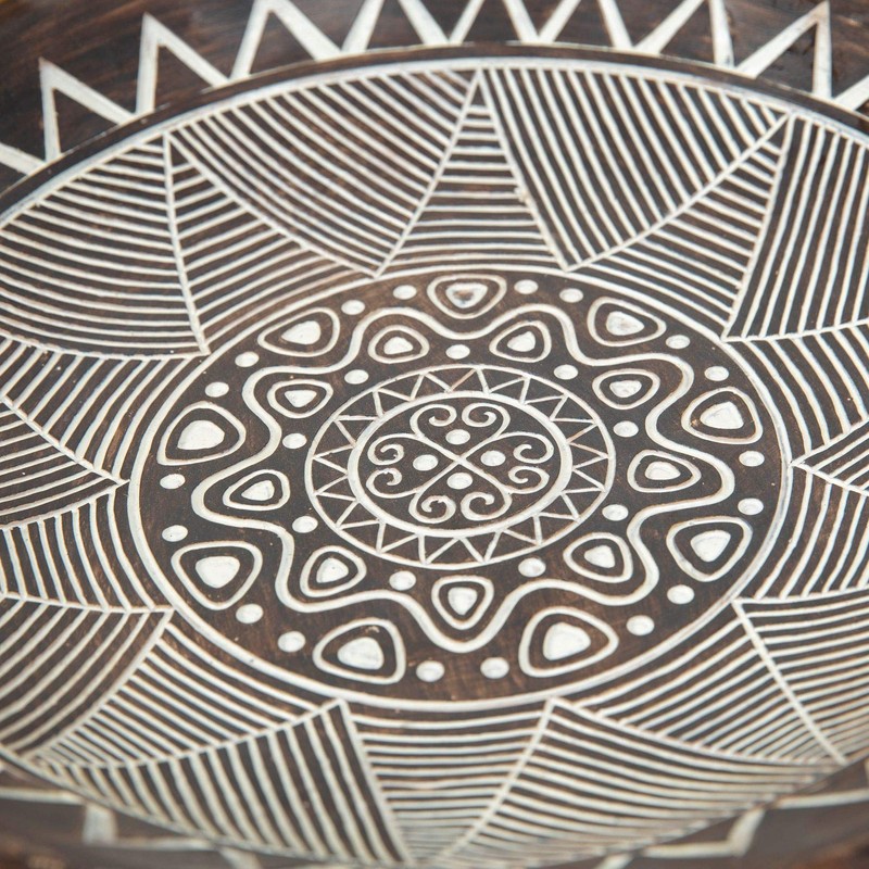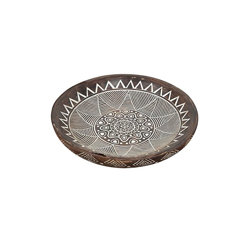 - A beautiful Aztec inspired patterned decorative bowl with carved ebony finish.