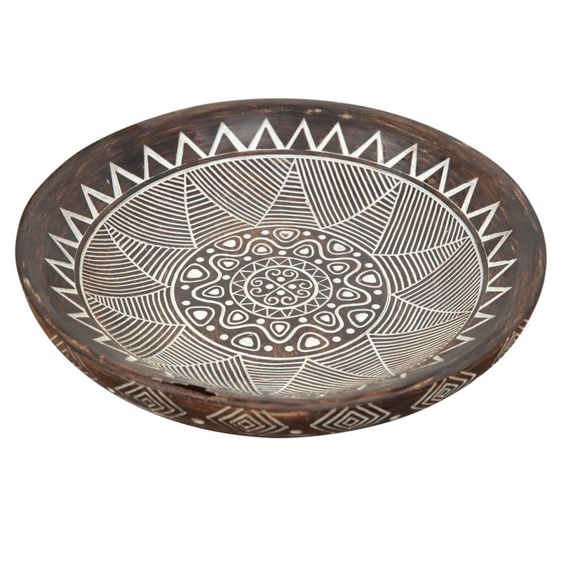 MAISONICA Handpainted Aztec Patterned Decorative Bowl 30cm Brown/Cream