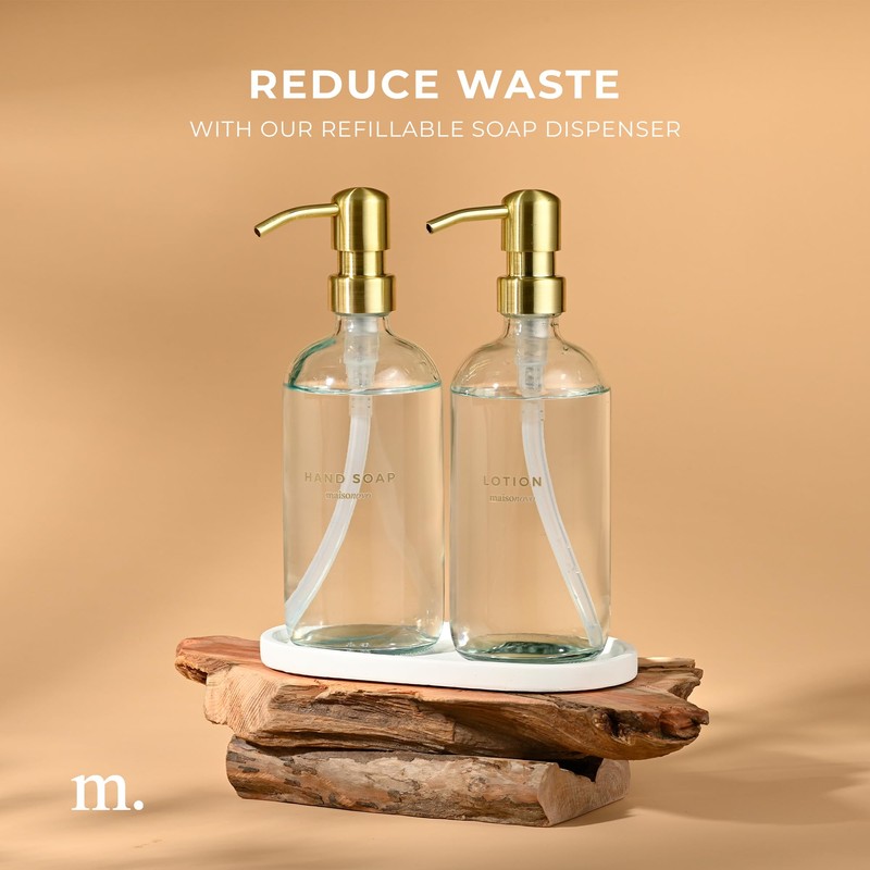 - Gentle on the Planet: Minimize waste with our sink soap dispenser pump. This sleek refillable soap dispenser set reduces environmental impact while adding natural elegance to your space. Opt for better living without compromising style with this hand soap and dish soap dispenser set.