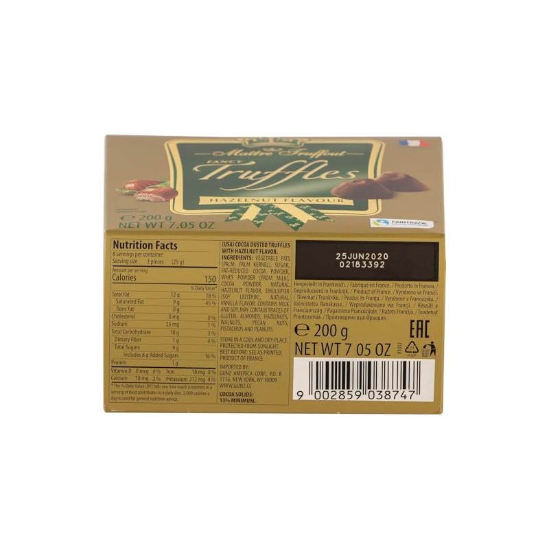 - Perfect Gift or Treat for Hazelnut Lovers: With its elegant packaging and exquisite taste, our 7.05oz/200g box of Hazelnut Flavor Fancy Cocoa Dusted Truffles makes a perfect gift for friends, family, or loved ones who love hazelnuts.