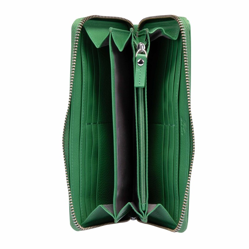 Wallet closes with zip.