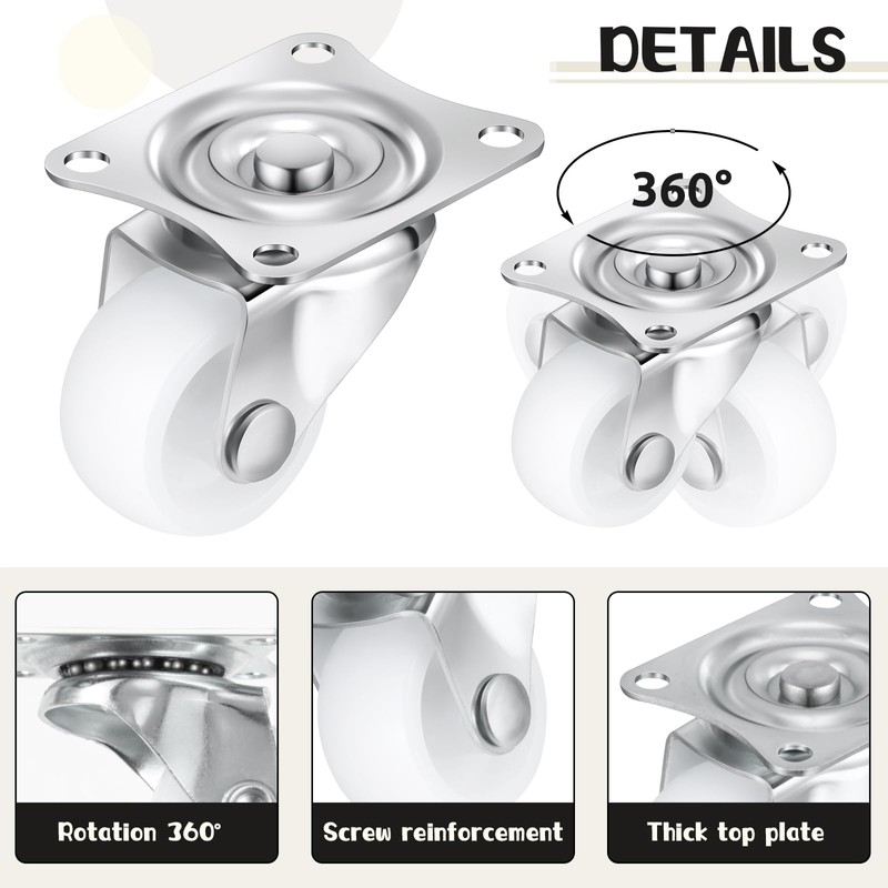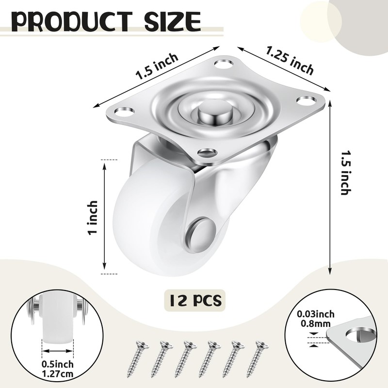 • Ample Quantity for Your Needs: the package includes a set of 24 pieces of small caster wheels and 96 pieces of screws, providing plenty amount for many applications; This set can be a practical choice for big projects, ensuring you have enough wheels to meet your needs