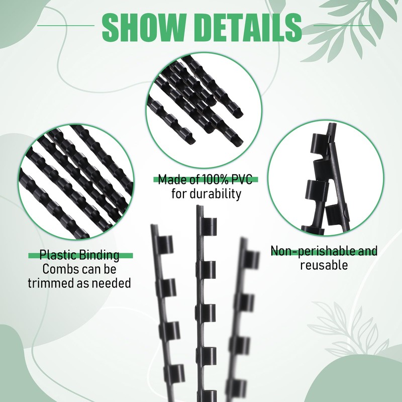 • Reliable Material: our plastic comb binding rings are made of reliable plastic material, safe and sturdy, with smooth surface, not easy to break or fade, their fine workmanship will serve you for a long time; And they can keep the paper from coming off easily