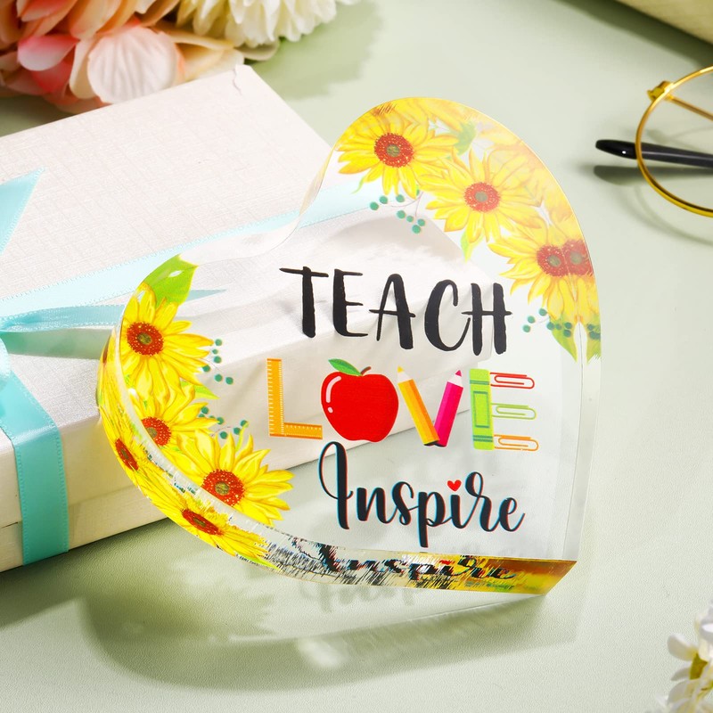 - Exquisite and Meaningful Design: this clear paperweight is designed to be a heart shape, printed with flowers and meaningful words [Teach Love Inspire], which is suitable for you to send on teacher appreciation week, first or last day of school, teacher's birthday, retirement and more occasions