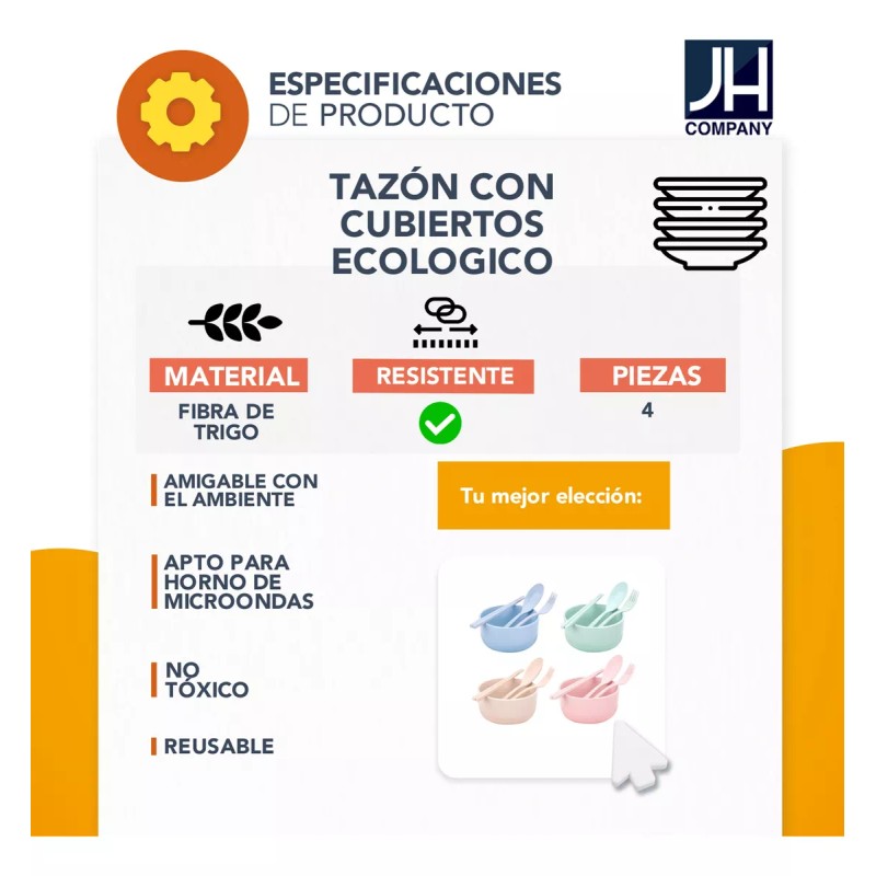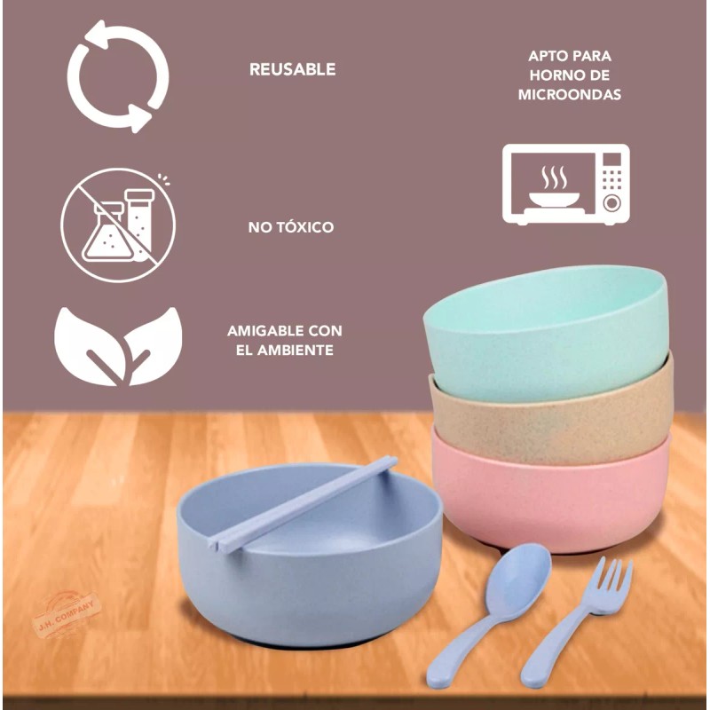 MAIXIANG Bowl Tazon Con Cubiertos Ecologico Fibra De Trigo Mx-003