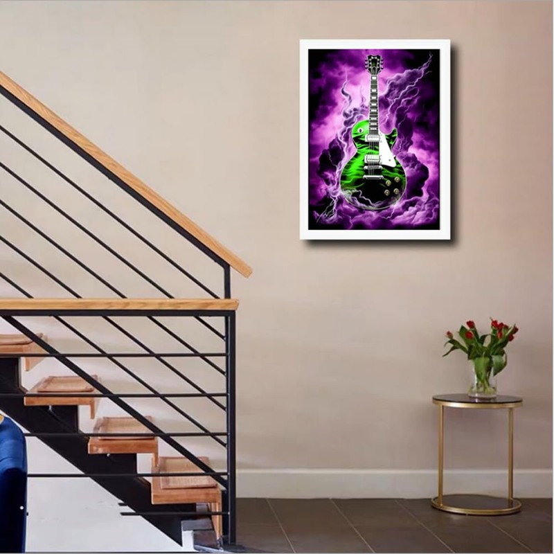 MaiYiYi Lightning Guitar Diamond Painting by Numbers, 5D Full Round Drill Guitar Crystal Diamond Painting Set, Cloud Guitar Diamond Painting for Adult Home Wall Art Decor (30X40 CM)
