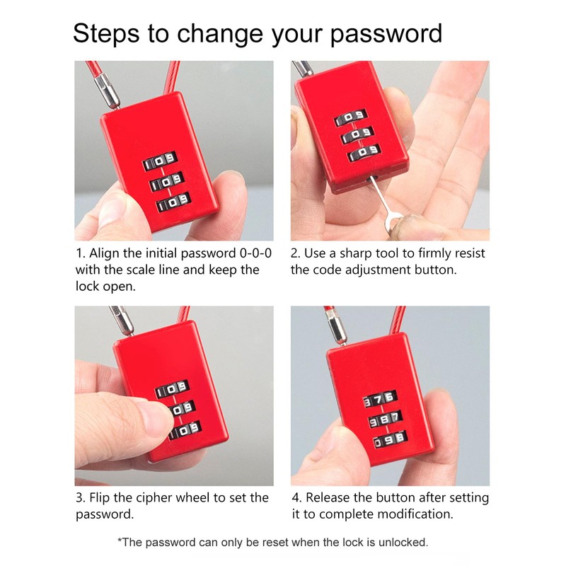 Featuring an enhanced locking mechanism, this 3-digit lock provides added protection against theft and unauthorized access. The durable steel cable is designed to resist cutting and tampering, providing a reliable barrier for luggage, backpack, gym locker, toolbox, and more.