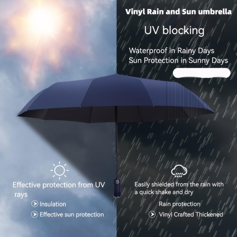- Reverse folding design: After folding the umbrella, the side that touches the rain is inside to avoid wetting the environment and hands when putting the umbrella.