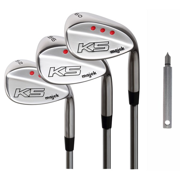 Majek Golf (Tall 5'8"+) Senior Ladies Wedge Set: 52° Gap Wedge (GW), 56° Sand Wedge (SW), 60° Lob Wedge (LW) Ladies Flex with Premium Ladies Arthritic Grip + Free Wedge Groove Sharpener (Silver)