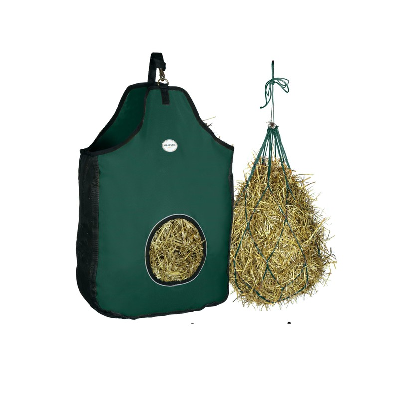 Majestic Ally 1200 D Hay Feeder Tote Bag for Horses, Sheep with Reflective Trim- Reduces Waste - Comes with 36” Hay Net. (Hunter Green)