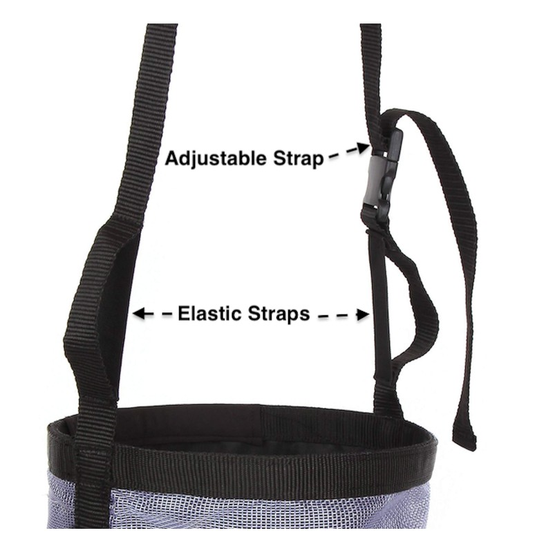 • Adjustable Strap with Elastic Straps - Our bag features quick-adjust straps together with elastic straps on two sides to keep the Feed Bag in place and prevent the Feed from being fallen-off. The strap is adjustable to fit feed bag on different sizes horses; all for better accessibility.