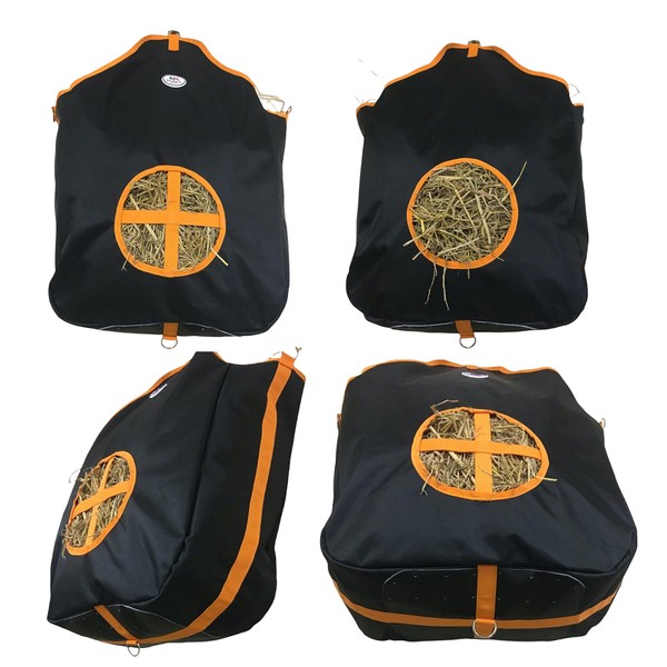 - We use a heavy-duty 1000 D Nylon with ultra-strong stitching for durability, faux leather over nylon fabric on bottom provides extra strength and ventilation and to keep to your Hay dry.