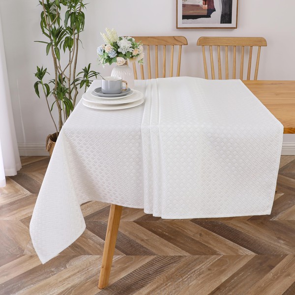 • π—£π—”π—–π—žπ—”π—šπ—˜ π—œπ—‘π—–π—Ÿπ—¨π——π—˜π—¦: This large tablecloth is versatile, measuring 70 inches by 108 inches. It features an attractive jacquard Geometric - White print. This color scheme adds an elegant touch to your table decor, making it suitable for various occasions and settings.