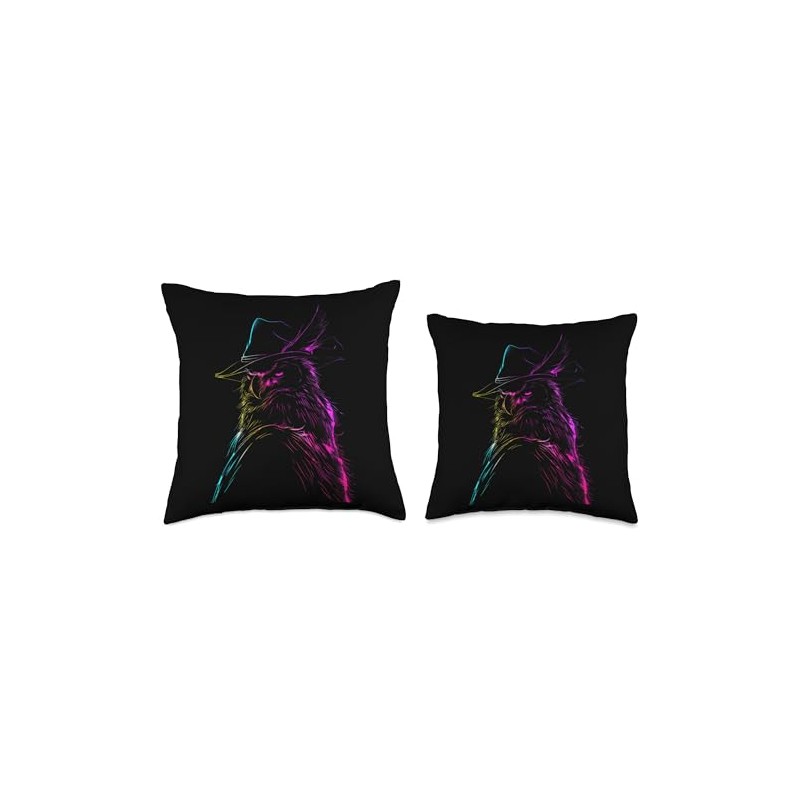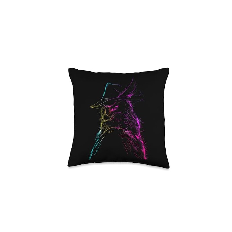 Majestic Owl With Hat Feather Sketch Style Throw Pillow