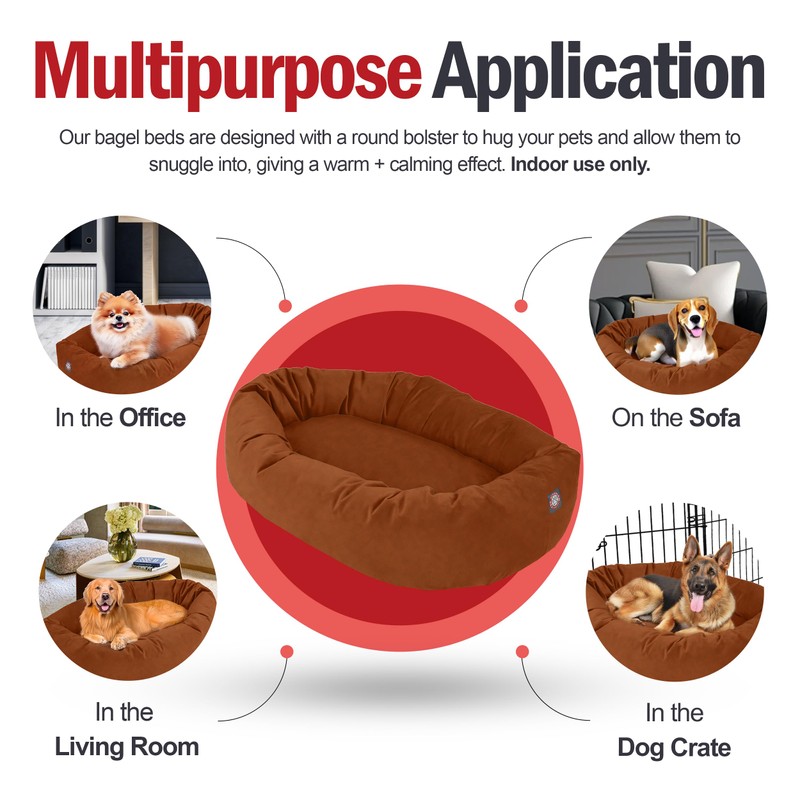 Majestic Pet 52 Inch Suede Calming Dog Bed Washable 52x35x11 (Inch) – Cozy Soft Round Donut Dog Bed with Spine Support for Dogs to Rest Their Head - Pet Bed X- Large – Rust (2025)