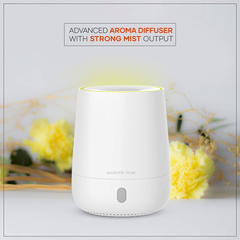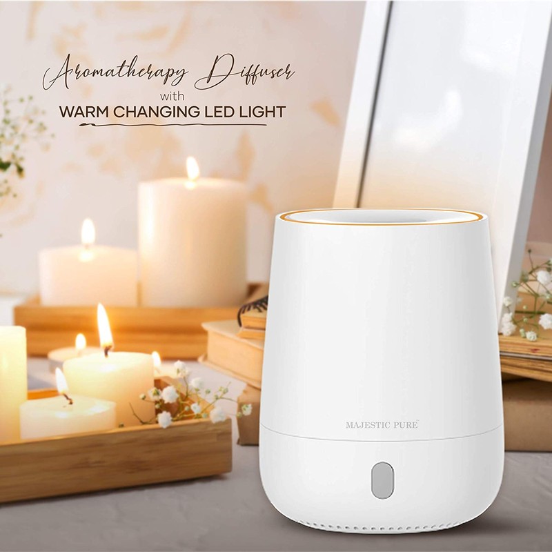 MAJESTIC PURE USB Essential Oil Diffuser, Portable Aromatherapy Diffuser, Travel Size, Auto Shut-Off for Spa Room, Home, Office, Bedroom - BPA Free, 120 ml White