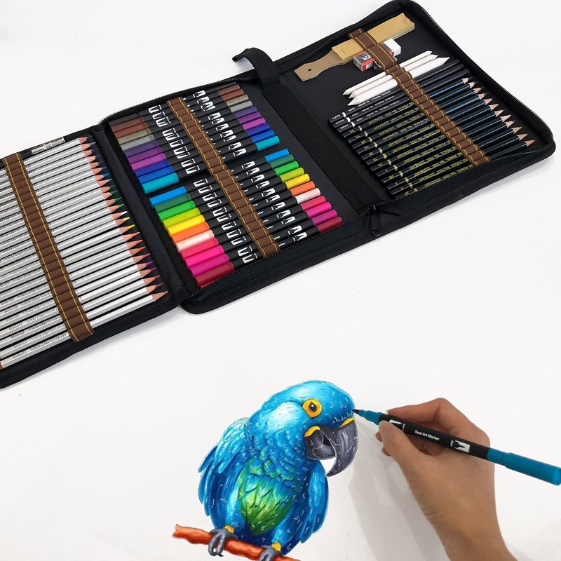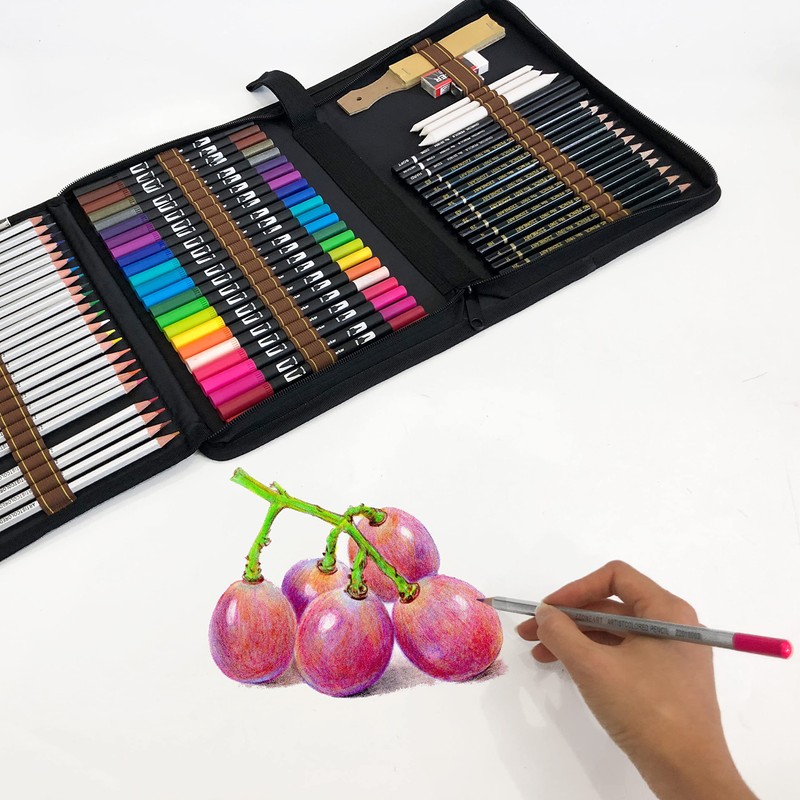 • 5.Easy storage:The portable kit bag with individual slots to help you organize all your color pencils set an Colouring Pens,Takes up very little space making,the Colored Pen Set is perfect at home,at school or while traveling.