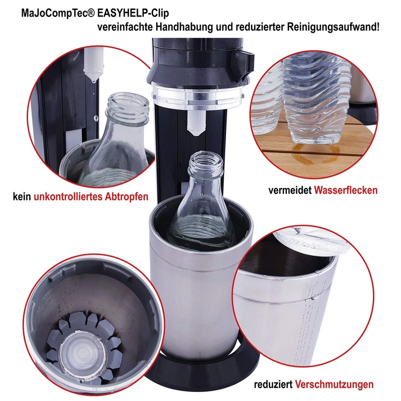 - Easyhelp clip: compatible with SodaStream Crystal 2.0 water carbonator - prevents unwanted dirt of the carafe container - reduces cleaning effort and significantly simplifies handling