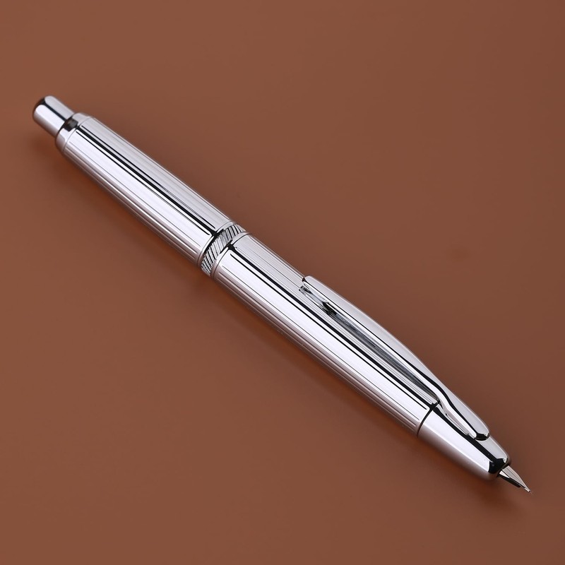 Majohn A1 Retractable Fountain Pen, Extra Fine Nib with Box, Silver Stripe, Metal Ink Pen with Converter, Writing Set (with Clip Version)