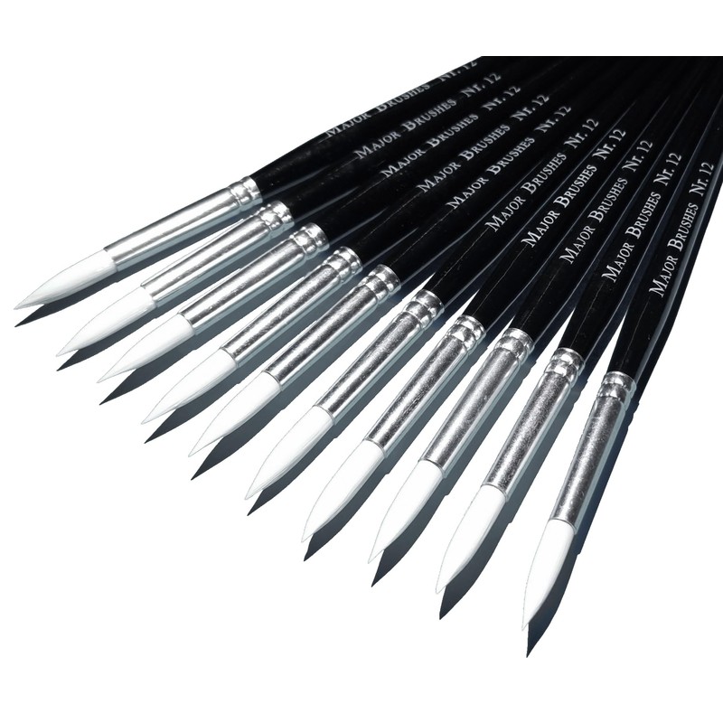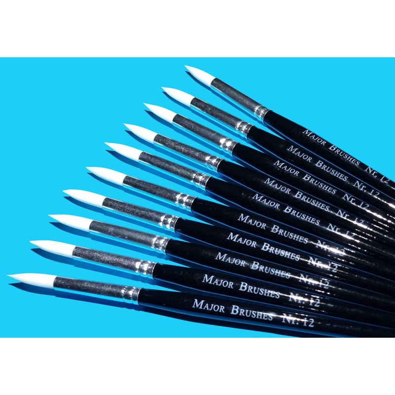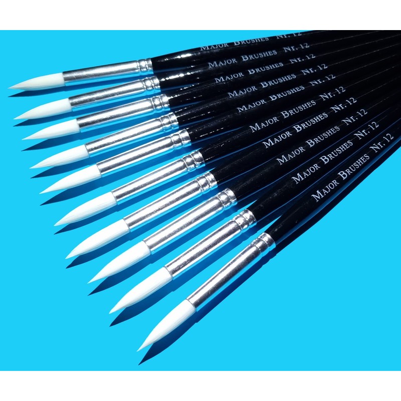 Major Brushes Sable Substitute Size 12 Artist Paint Brushes - Pack of 10