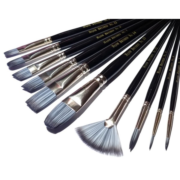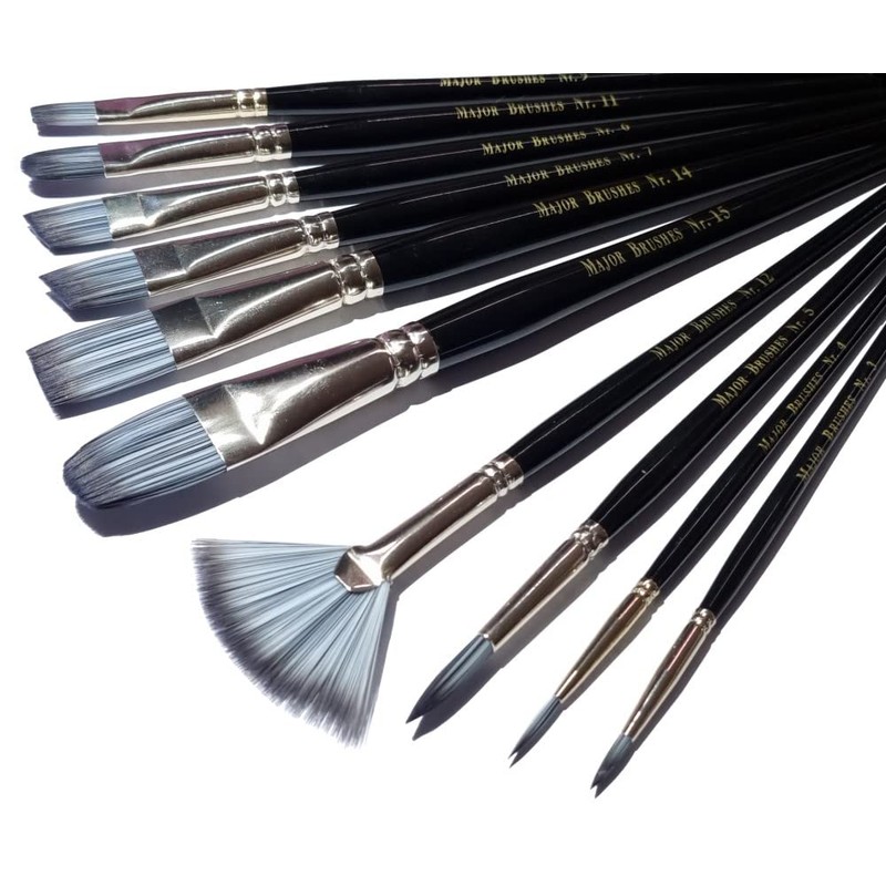 Major Brushes Silvertone Synthetic Brushes Pack of 10