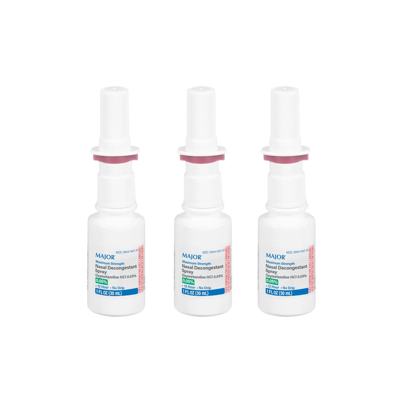 MAJOR 12-Hour Nasal Decongestant Spray-Oxymetazoline Hydrochloride 0.05% Nose Spray for Adults and Kids - Soothing Pump Mist for Cold, Allergy, Nasal Congestion, and Sinus Relief - 1 Fl. Oz.(3 Pack)