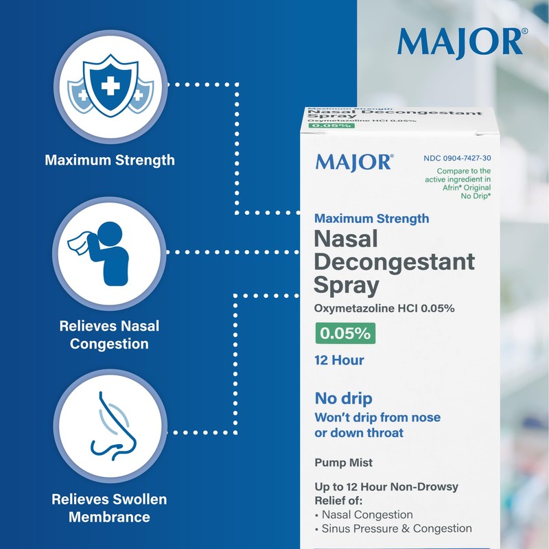 - NASAL CONGESTION RELIEF: Major's Oxymetazoline Hydrochloride 0.05% Nose Spray is a trusted remedy for temporary relief from nasal congestion due to the common cold, hay fever, and upper respiratory allergies.