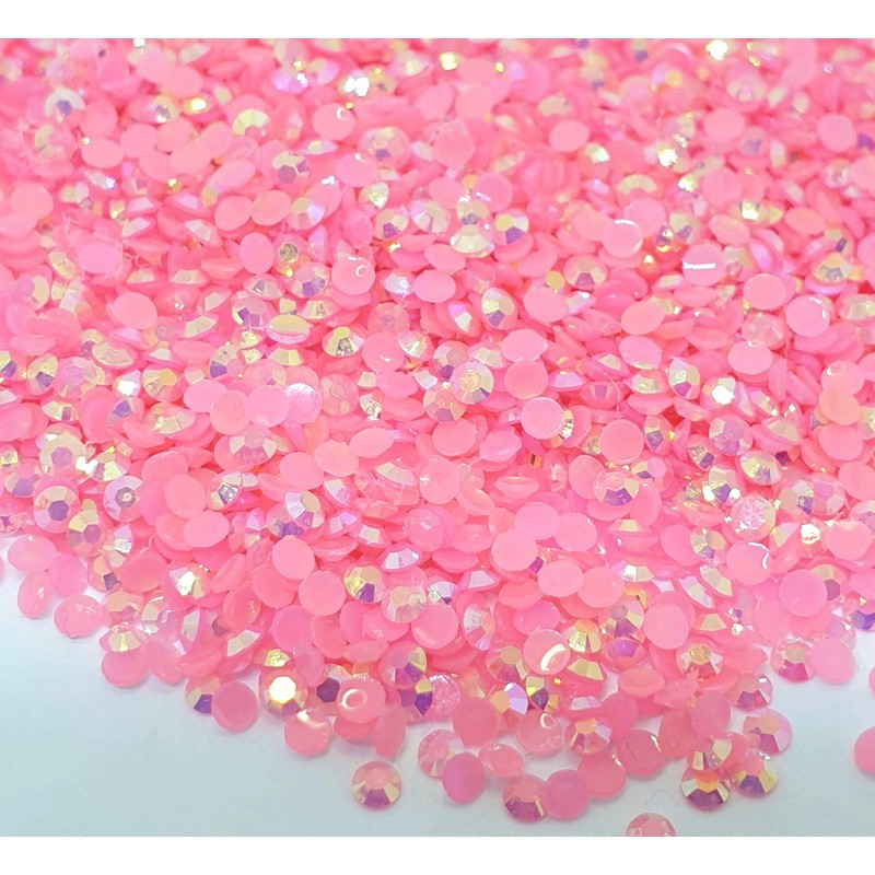MajorCrafts 4000pcs 2mm ss6 Jelly AB Flat Back Round 14 Facets Resin Rhinestones Arts and Crafts Embellishment Gems (Light Pink AB C75)