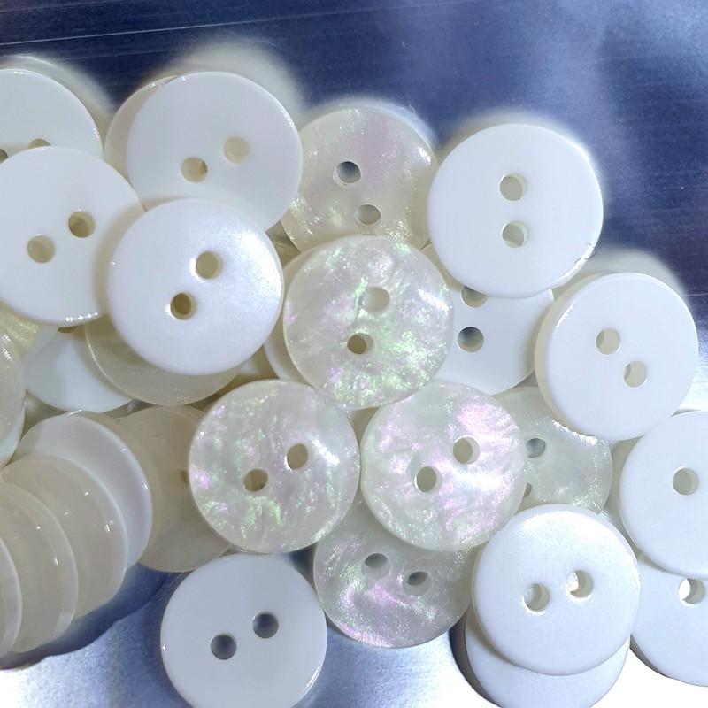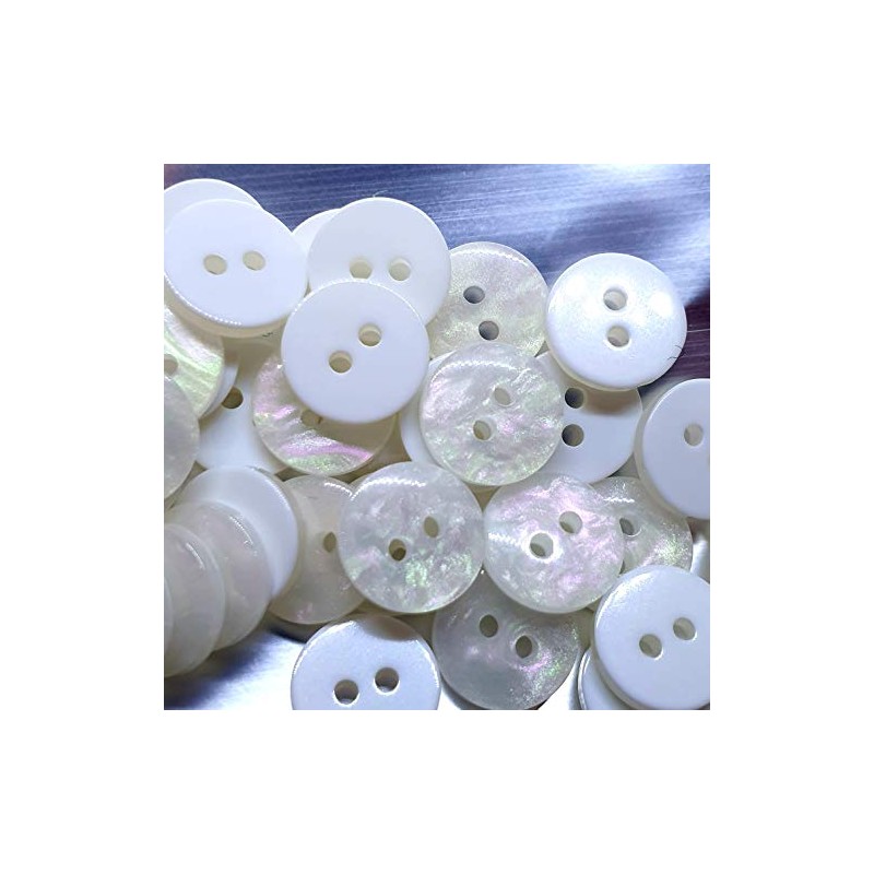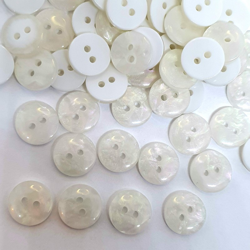 MajorCrafts® 60pcs 11.5mm Cream White Pearlescent Galaxy Effect 2 Holes Small Round Resin Sewing Buttons Needlework Craft Embellishments