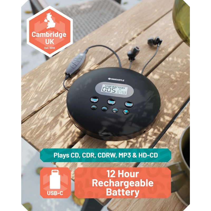 ๐—ฅ๐—˜๐—–๐—›๐—”๐—ฅ๐—˜๐—š๐—”๐—•๐—Ÿ๐—˜ ๐Ÿญ๐Ÿฎ-๐—›๐—ข๐—จ๐—ฅ ๐—•๐—”๐—ง๐—ง๐—˜๐—ฅ๐—ฌ - The ultimate portable USB CD player, the CD100 is perfect for audio on the go. With 12 hours of battery life from the inbuilt rechargeable battery. Alternatively, use mains power or a portable power source via the built-in Micro USB slot.