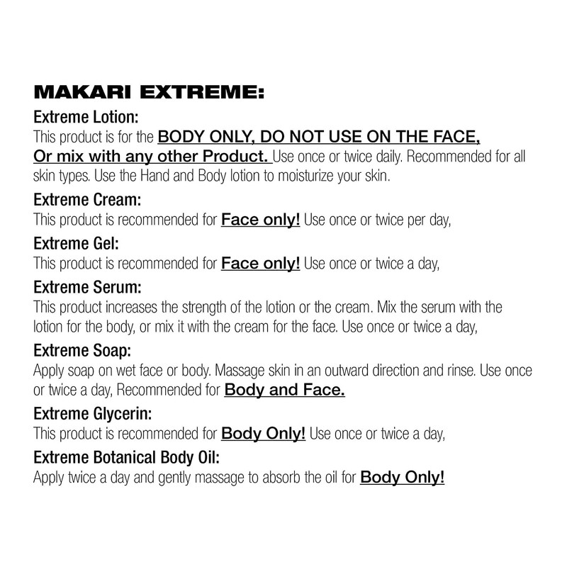 For years, women have sought for high-end skincare products designed exclusively for their unique concerns. Finally, with Makari's Extreme Collection, everyone can achieve the clear, smooth, glowing complexion they've always dreamed. Specially formulated for all skin types, our rejuvenating Extreme Carrot & Argan Oil Soap is enriched with Organiclarine, a naturally derived active whitening agent. In the bath or shower, lather the skin with this exfoliating bar, and watch spots, scars and pigmentation disappear for a fresh, youthful, perfect look. This antioxidant-rich soap is also infused with vitamins C and E, helping to smooth wrinkles and sharpen sagging skin for maximum anti-aging benefits. Use routinely with Makari's complete line of Extreme Brightening products to achieve your ideal shade of beautiful!