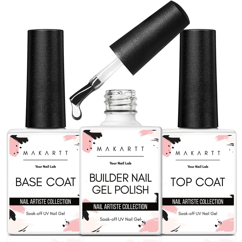 - Ultimate Nail Thickening Build Trio Kit: Elevate your nail care routine with Makartt upgraded nail strengthening trio, featuring 1* 8ml Clear Builder Gel, 1* 8ml Gentle Base Coat, and 1* 8ml High-Gloss Top Coat. Specially formulated to enhance and protect thin, weak, soft, or brittle nails, this set delivers a salon-quality finish at home. Makartt makes achieving the nails you've always dreamed of both easy and affordable, bringing professional results to your fingertips
