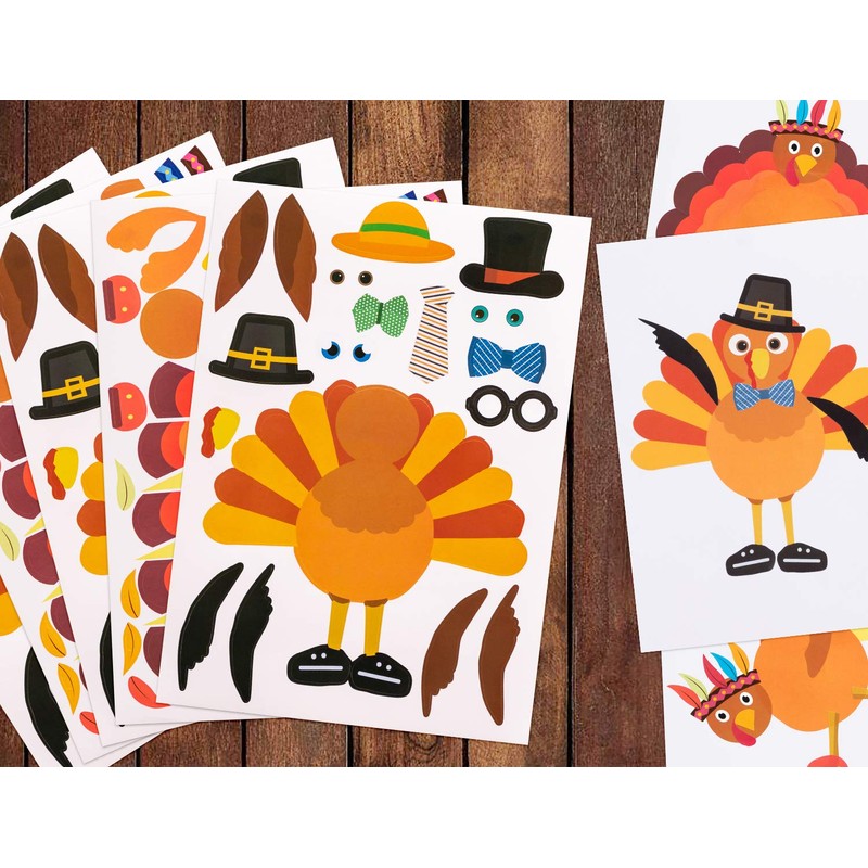 - Kids can DIY their own turkey by this funny Make-A-Turkey game. Dress up the turkey using these stickers, kids would be more creative and imaginative.