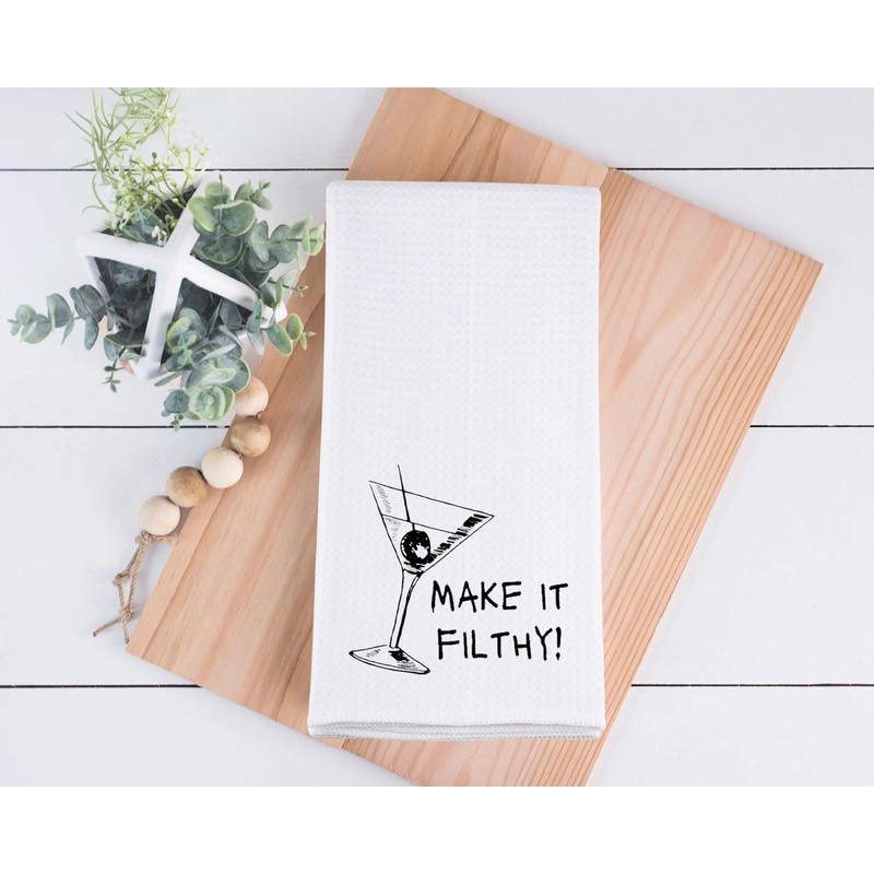 Make It Filthy Dirty Martini Kitchen Towel Filthy Martini Gift Cocktail Lover Gift (IT Filthy Towel CA)