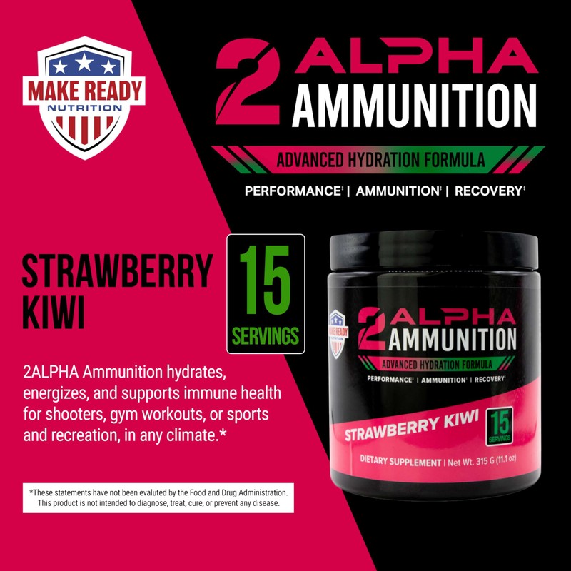 MAKE READY NUTRITION MAKE READY NUTRITION 2ALPHA Ammunition Strawberry Kiwi - Hydration, Energy Drink, and Immune Support with Vitamin C, Calcium, Potassium, D-Ribose, Magnesium & Zinc - 315g