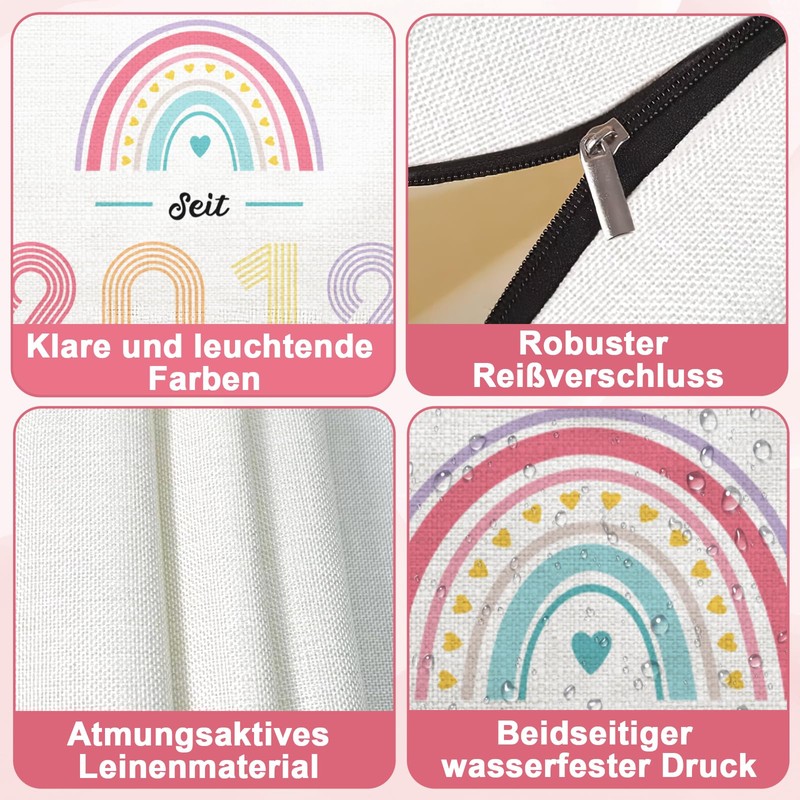 • Timeless gift for 13th birthday girl: personalised make-up bag for 13th birthday girls made of linen with cotton lining. Printed with: "Make the World Better", "Since 2012" and Rainbow.