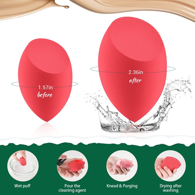- NASS UND TROCKEN VERWENDEN: Ihre Make up sponge für Foundation werden größer, wenn sie vollständig nass sind (eine Eigenschaft von Nicht-Latex-Materialien), ein trockener Schwamm für Kuchen- und Puderprodukte und ein nasser Schwamm für Creme- und Flüssigprodukte. Ein nasser Beauty-Schwamm ist etwa 1,5 Mal so groß wie ein trockener Schwamm