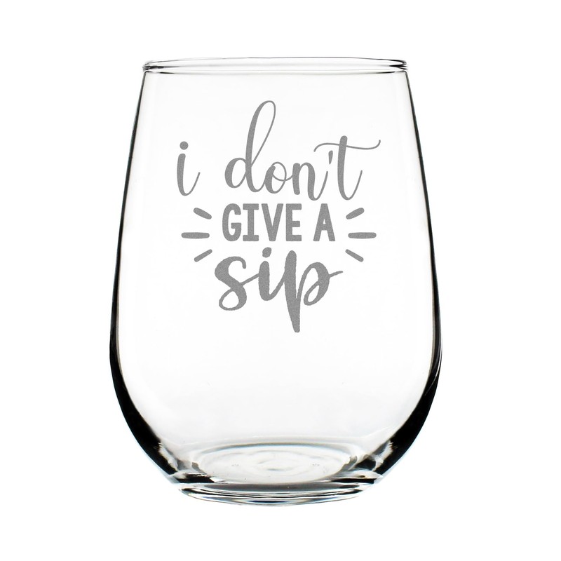 Make Your Mark Design I Dont Give A Sip 17oz Stemless Wine Glass Hand Engraved Etched Perfect Funny Gift Lover Glassware